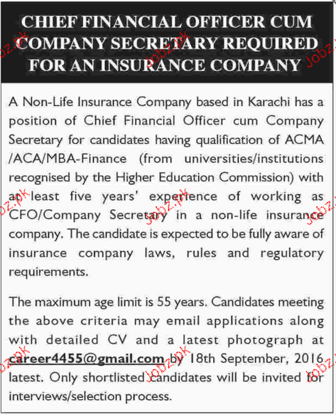Apply as per details in job advertisement. Login to view further details of how to apply via https://www.jobz.pk online.