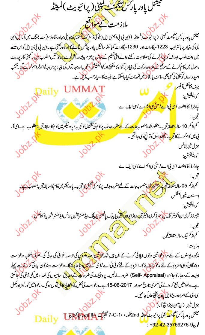 Apply as per details in job advertisement. Login to view further details of how to apply via https://www.jobz.pk online.