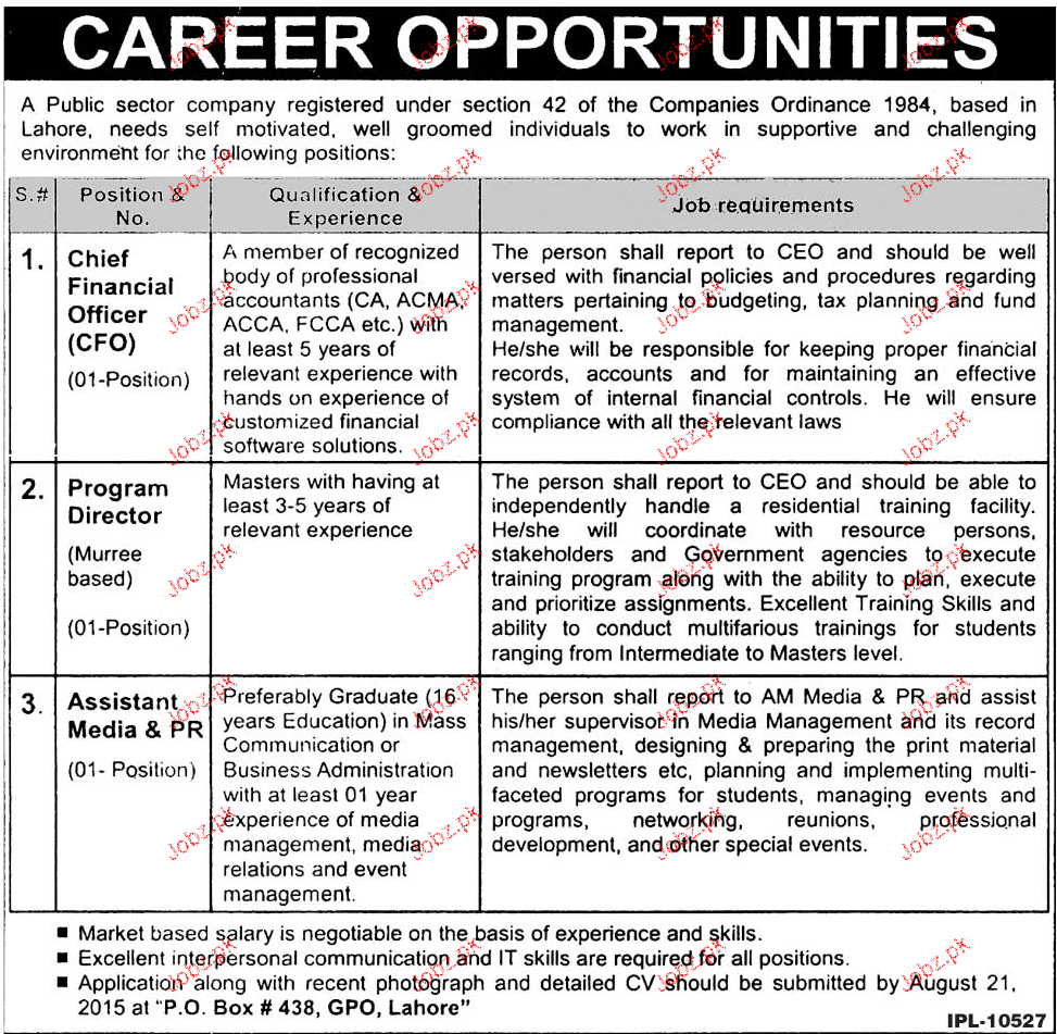 Apply as per details in job advertisement. Login to view further details of how to apply via https://www.jobz.pk online.
