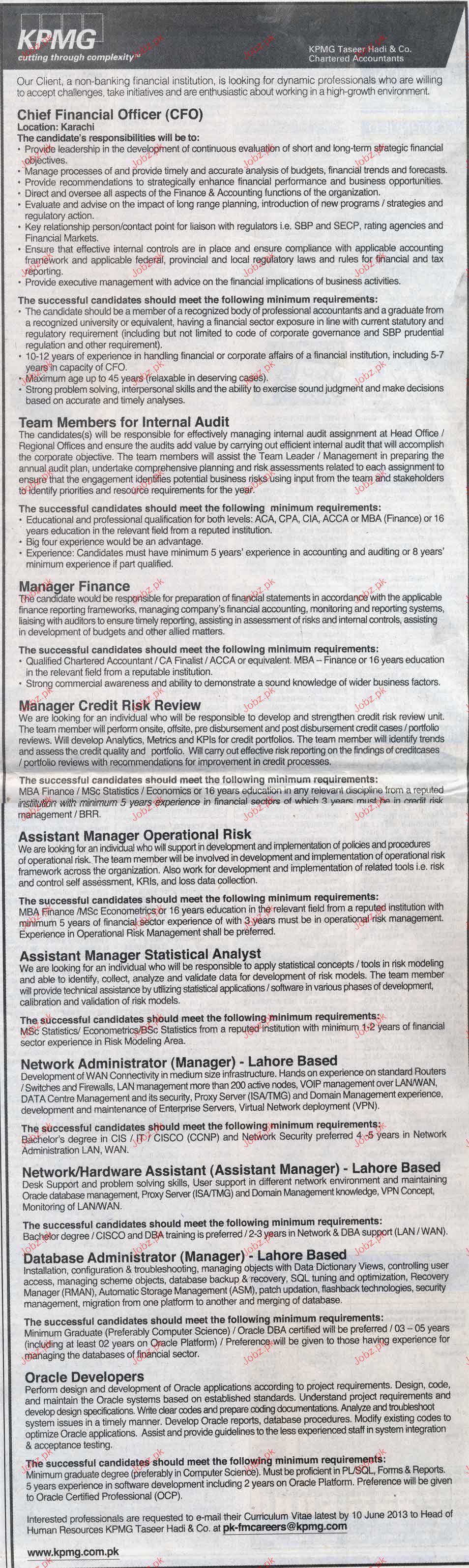 Apply as per details in job advertisement. Login to view further details of how to apply via https://www.jobz.pk online.