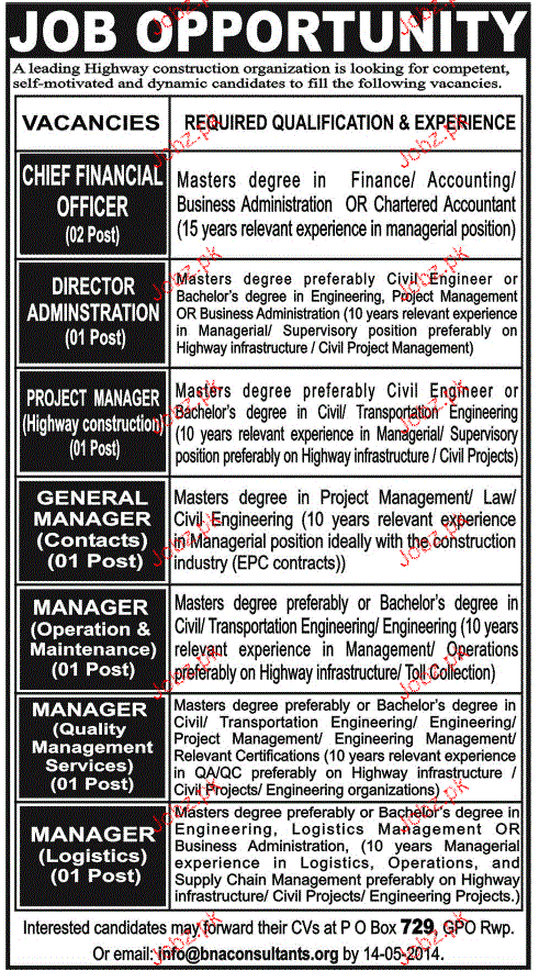Apply as per details in job advertisement. Login to view further details of how to apply via https://www.jobz.pk online.