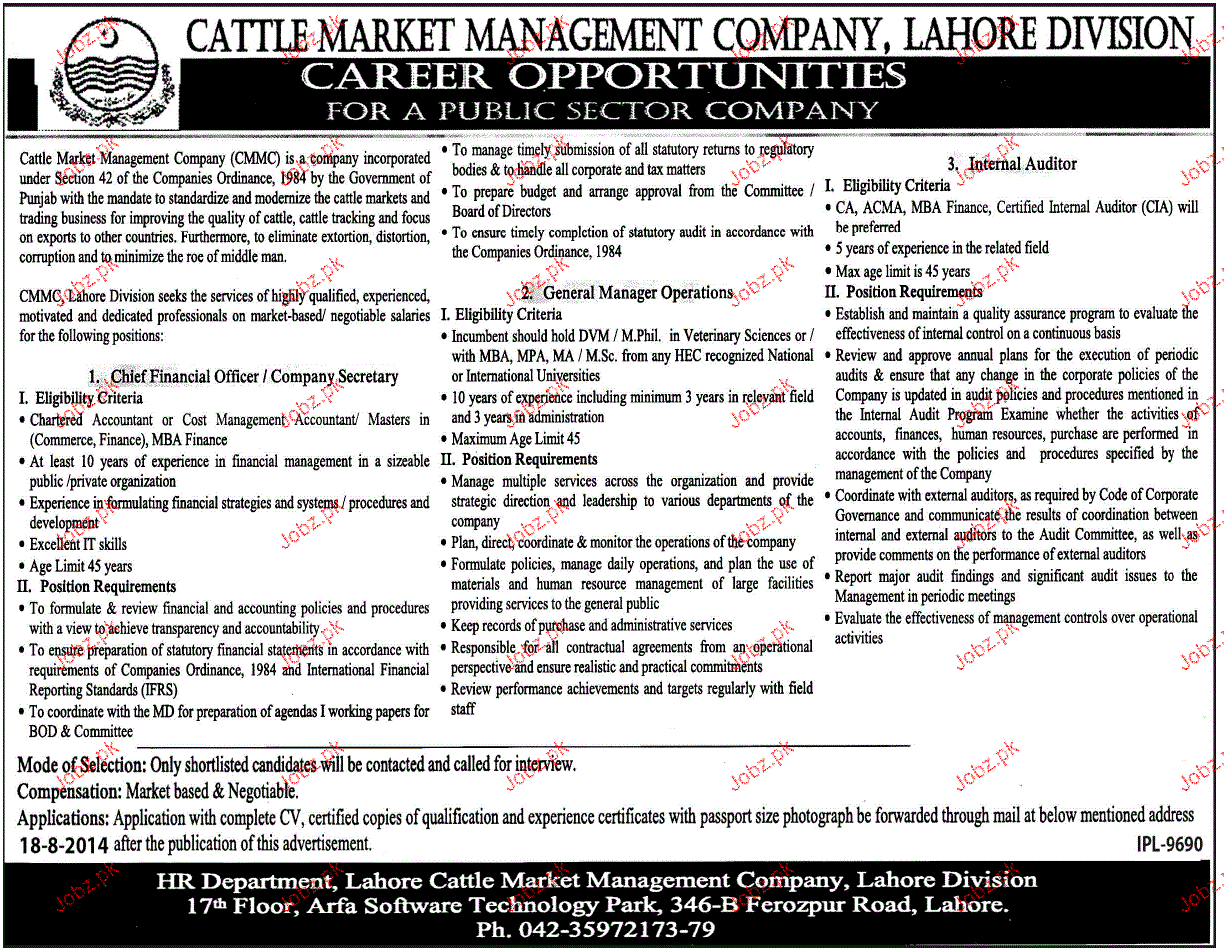 Apply as per details in job advertisement. Login to view further details of how to apply via https://www.jobz.pk online.