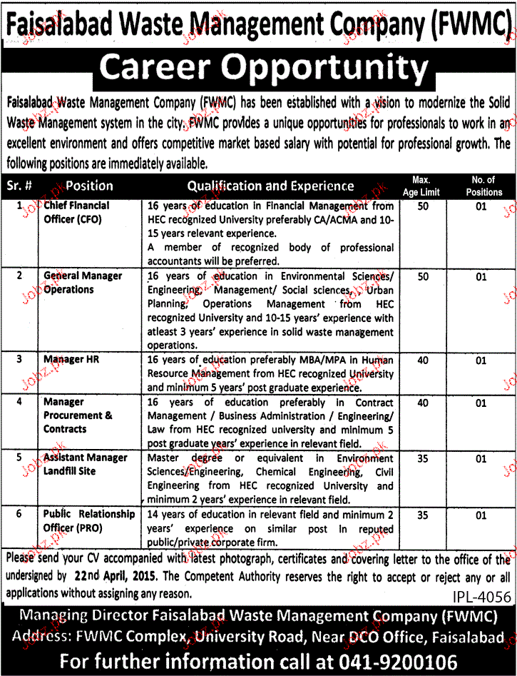 Apply as per details in job advertisement. Login to view further details of how to apply via https://www.jobz.pk online.