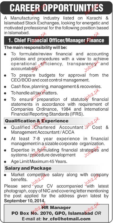 Apply as per details in job advertisement. Login to view further details of how to apply via https://www.jobz.pk online.