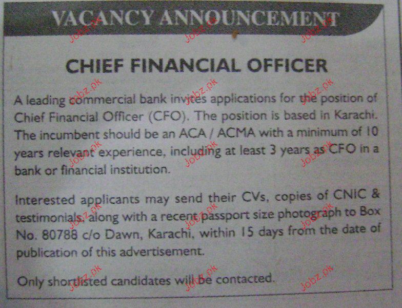 Apply as per details in job advertisement. Login to view further details of how to apply via https://www.jobz.pk online.