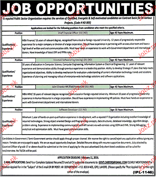 Apply as per details in job advertisement. Login to view further details of how to apply via https://www.jobz.pk online.