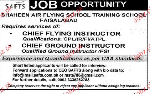 Chief Flying Instructors And Chief Ground Instructors Wanted