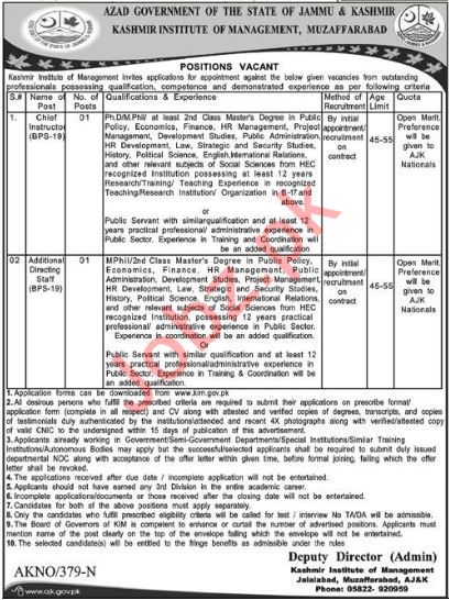 Latest Kashmir Institute of Management KIM Education Posts Muzaffarabad 2025