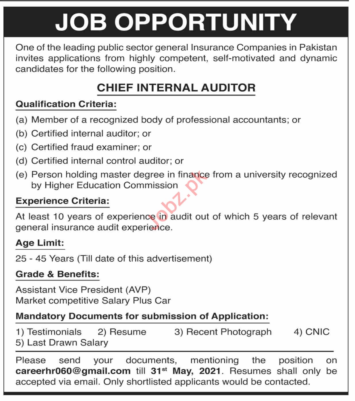 Chief Internal Auditor Jobs 2021 In Karachi