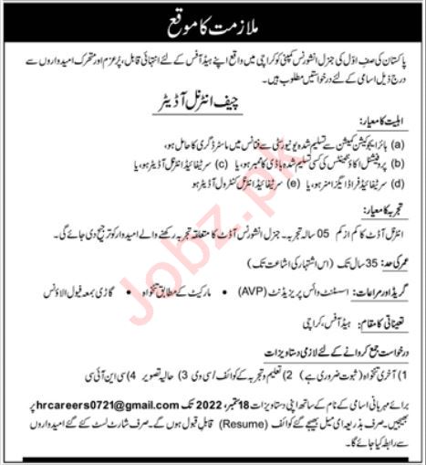 Insurance Company is looking for candidates for following posts as per job advertisement published in daily Jang Newspaper of September 4, 2022 for location Karachi, karachi Sindh Pakistan:
