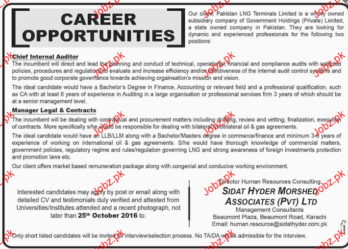 Chief Internal Auditors and Manager Legal Job Opportunity