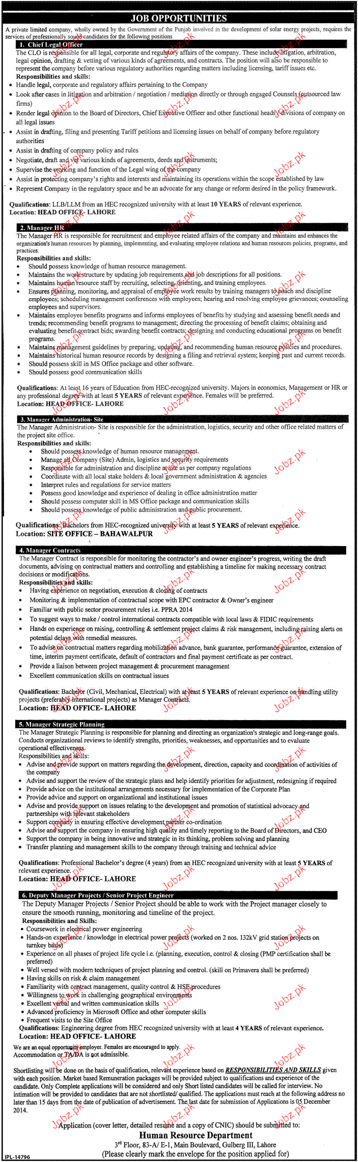 Apply as per details in job advertisement. Login to view further details of how to apply via https://www.jobz.pk online.