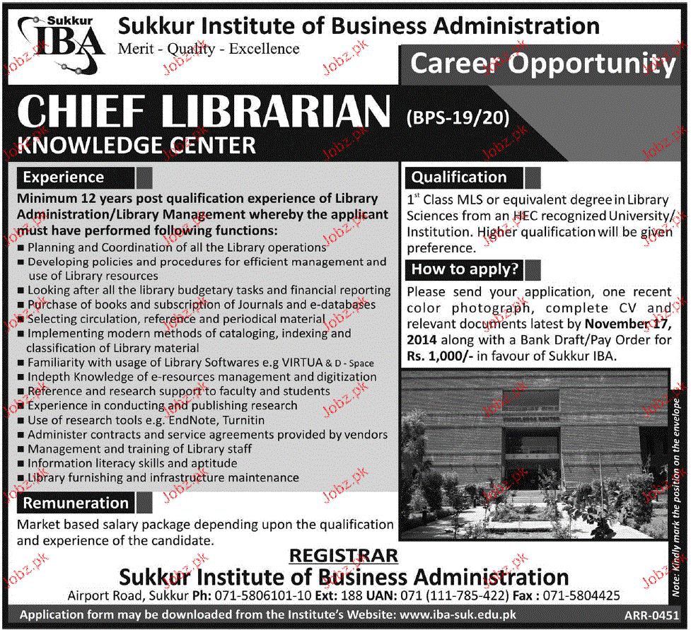 Chief Librarian Job In Sukkur Institute Of Business Administ