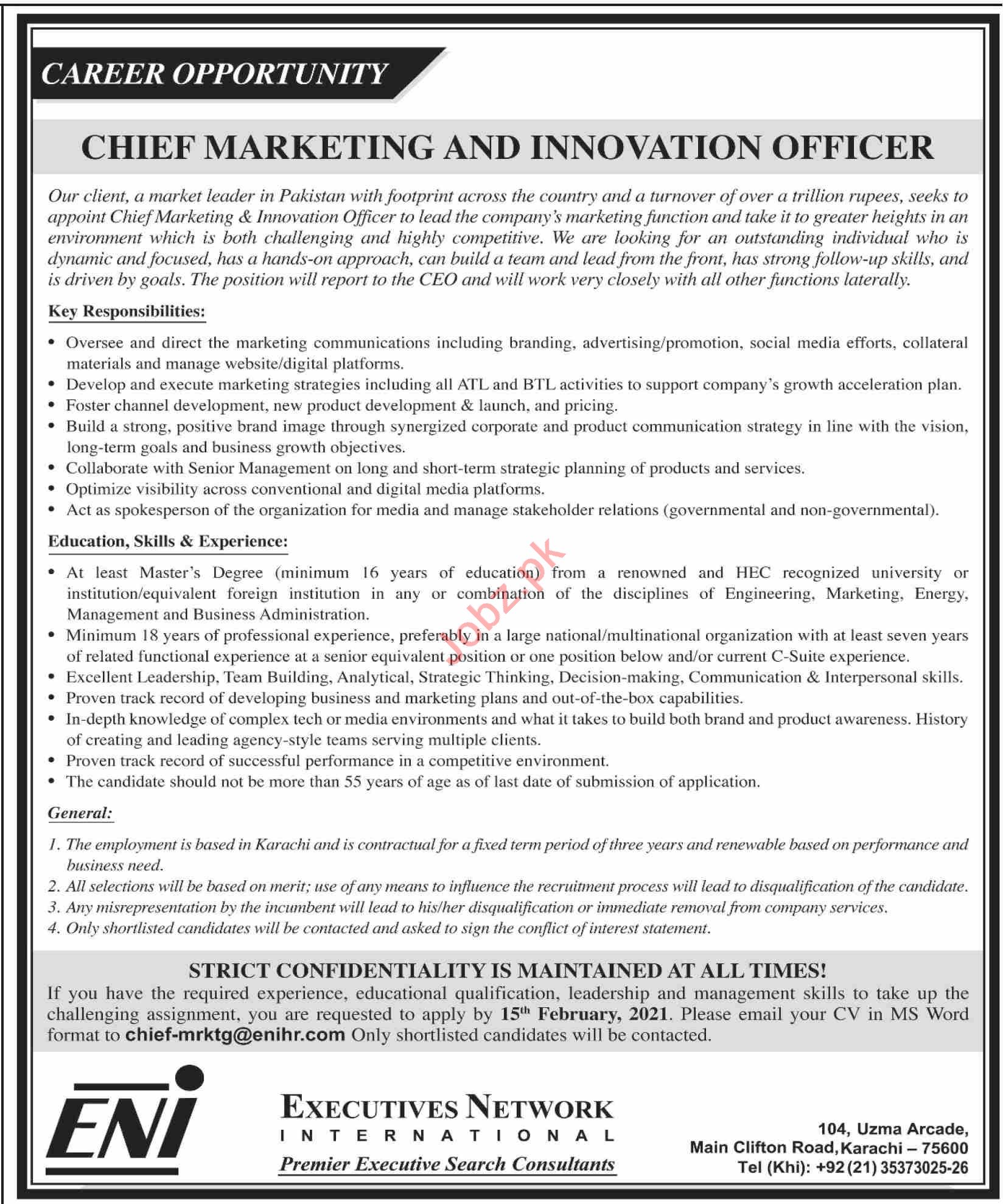Chief Marketing & Innovation Officer Jobs 2021 In Karachi