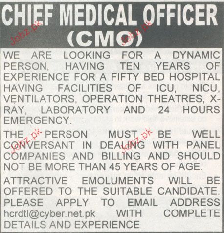 Apply as per details in job advertisement. Login to view further details of how to apply via https://www.jobz.pk online.