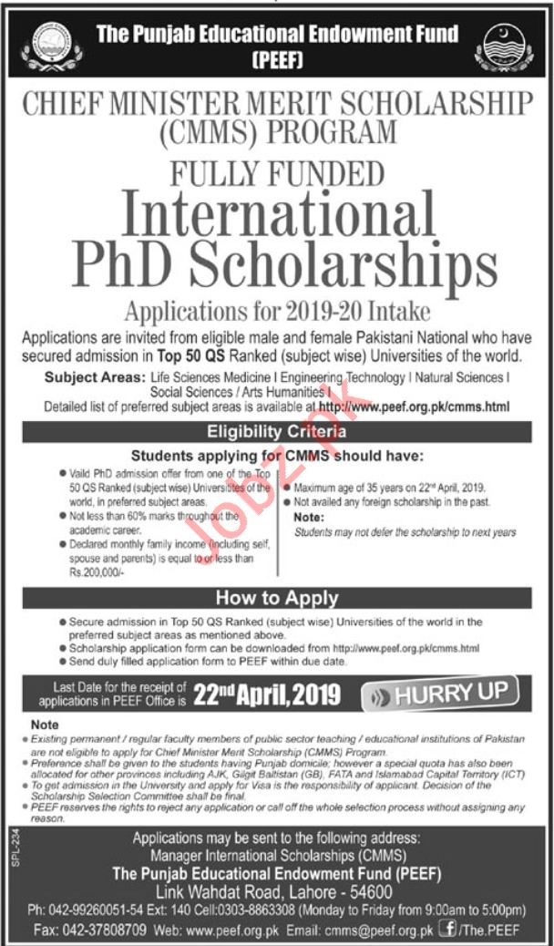 Vacancies in Punjab Education Endowment Fund PEEF Advertisement March 2019