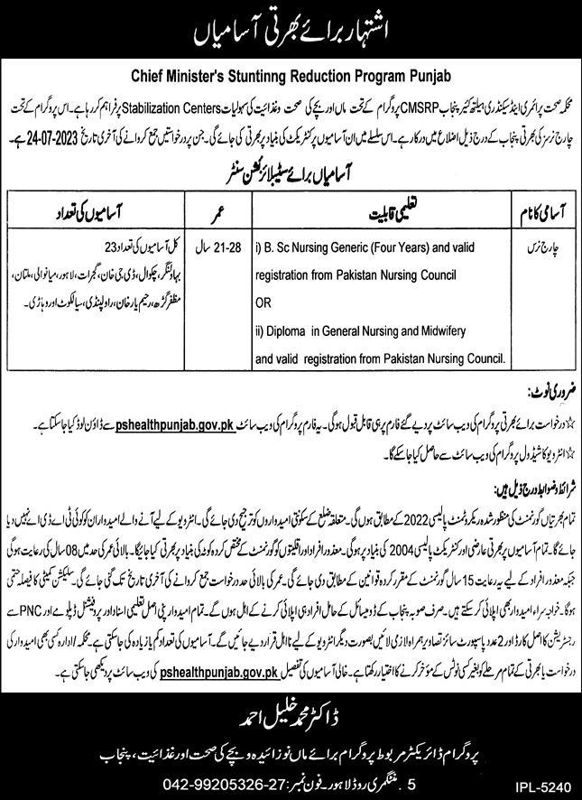 Chief Minister Stunting Reduction Program Punjab Jobs 2023