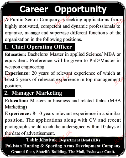 Apply as per details in job advertisement. Login to view further details of how to apply via https://www.jobz.pk online.