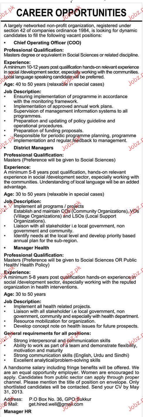 Apply as per details in job advertisement. Login to view further details of how to apply via https://www.jobz.pk online.