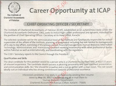 Apply as per details in job advertisement. Login to view further details of how to apply via https://www.jobz.pk online.