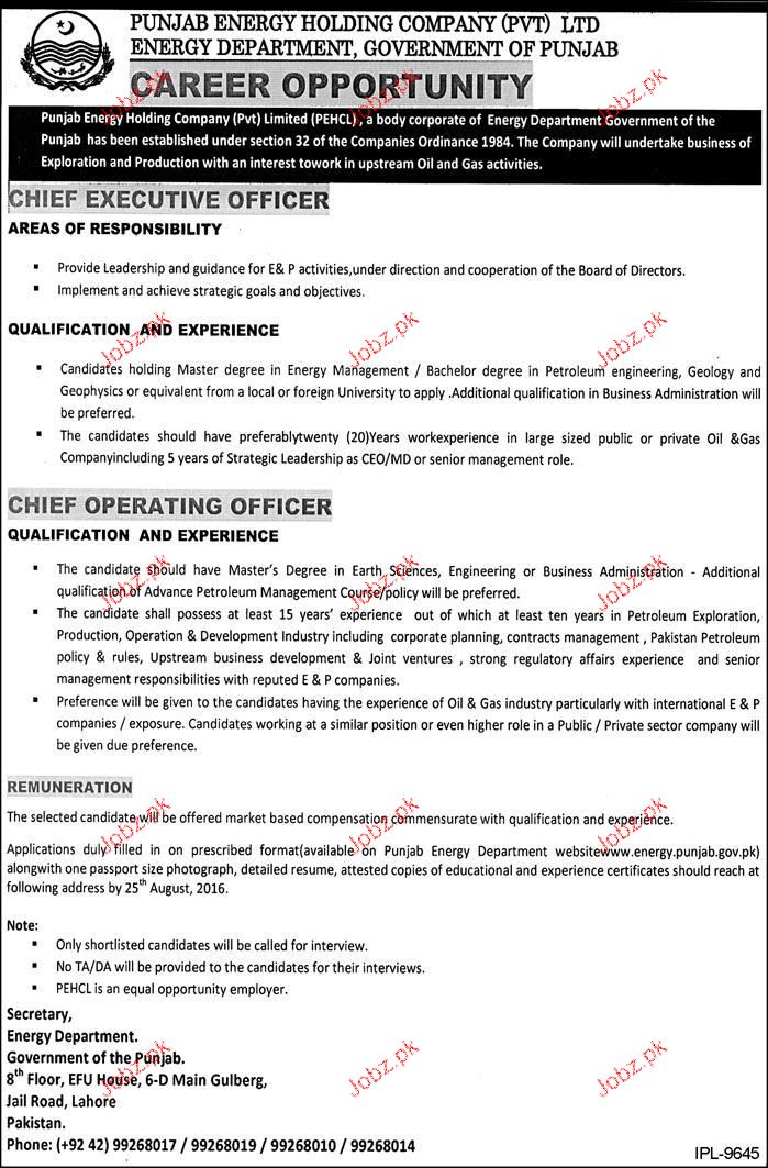 Apply as per details in job advertisement. Login to view further details of how to apply via https://www.jobz.pk online.