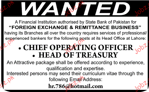 Apply as per details in job advertisement. Login to view further details of how to apply via https://www.jobz.pk online.
