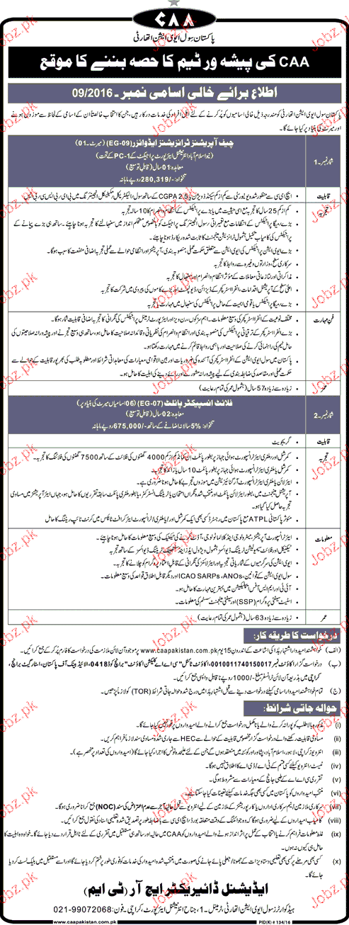 Chief Operations Advisors, Flight Inspectors Job In CAA