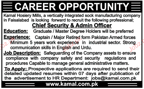 Chief Security And Admin Officer Job Opportunity