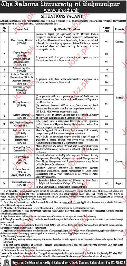 Apply as per details in job advertisement. Login to view further details of how to apply via https://www.jobz.pk online.