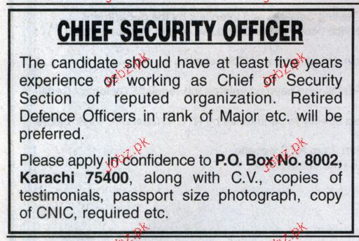 Apply as per details in job advertisement. Login to view further details of how to apply via https://www.jobz.pk online.