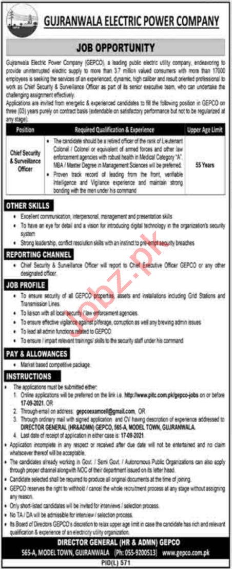 Chief Security & Surveillance Officer Jobs 2021 In GEPCO