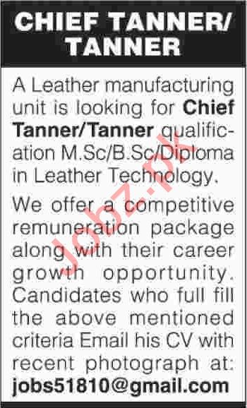 Chief Tanner Jobs 2020 In Leather Manufacturing Company