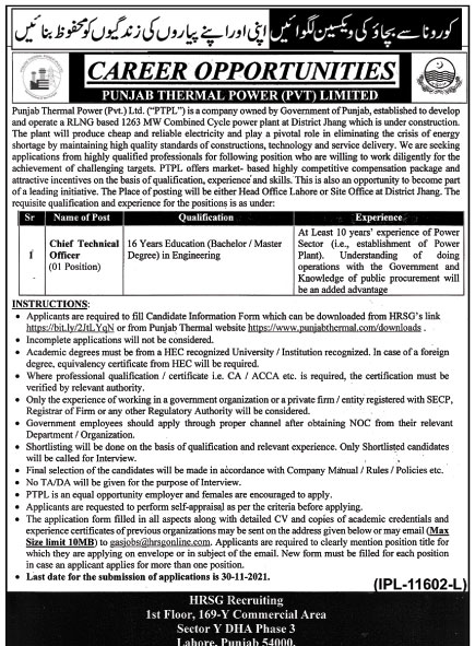 Chief Technical Officer Jobs In Punjab Thermal Power