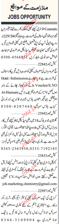 Apply as per details in job advertisement. Login to view further details of how to apply via https://www.jobz.pk online.