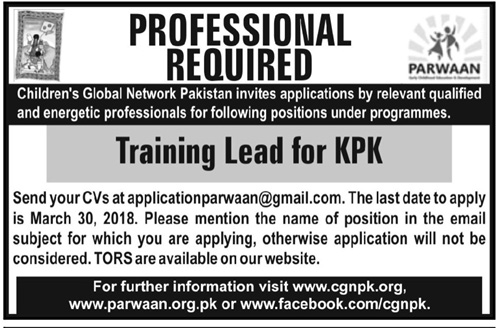 Latest Parwaan Preschool Network Management Posts Peshawar 2025
