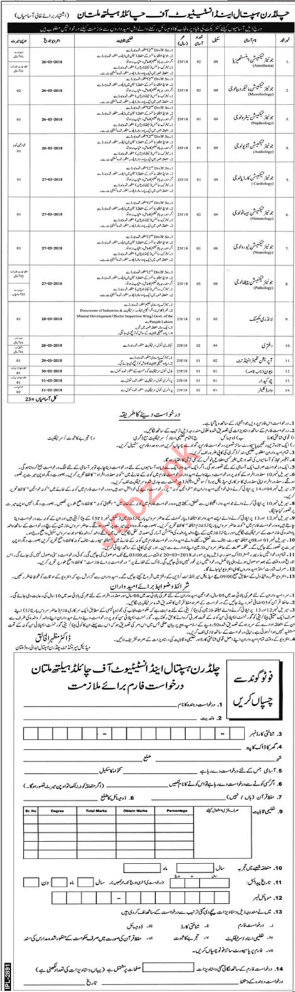 Latest Children Hospital & Institute of Child Health Management Posts Multan 2025