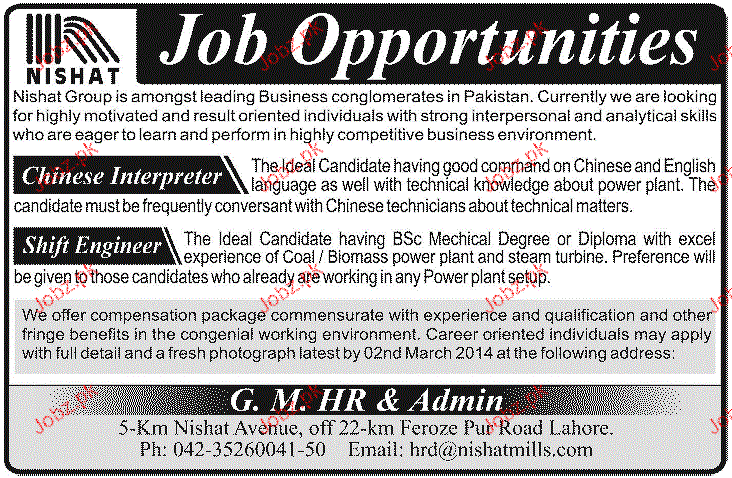 Chinese Interpreter and Shift Engineers Job Opportunity