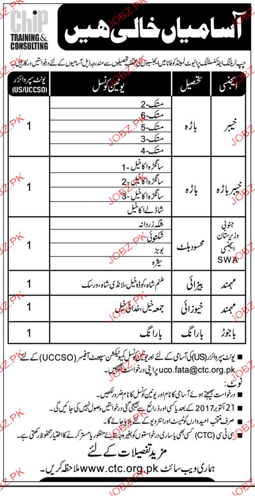 Latest CHIP Training & Consulting Pvt Ltd Management Posts Khyber Agency 2025