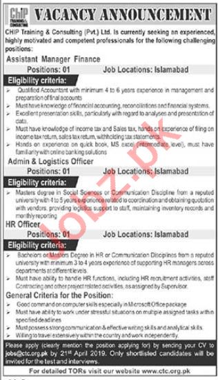 Vacancies in CHIP Training & Consulting Pvt Ltd Advertisement April 2019