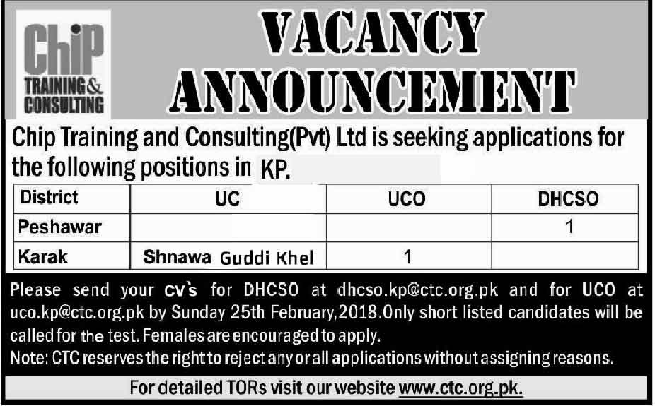 Latest CHIP Training & Consulting Pvt Ltd NGO Posts Peshawar 2025