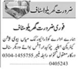 House jobs advertisement dated about 4 May 2024 in daily Dunya Newspaper invites application for the vacant post of kitchen helper, chowkidar, office boy, cook, driver, husband wife and patient care in Karachi, karachi Sindh Pakistan. Preferred Education is Middle, Matric and Primary etc.