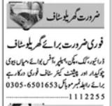 Latest Classifieds jobs in House in House Staff and others can be applied till 2 January 2026 or as per closing date in newspaper ad. Read complete ad online to know how to apply on latest House job opportunities.