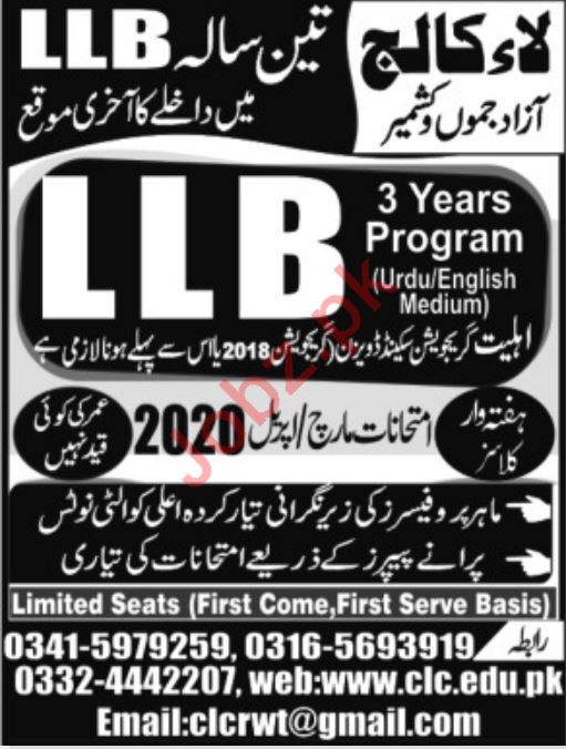 Citi Law College Muzaffarabad, Azad Jammu and Kashmir are announcing admissions winter 2019 for the classes of LLB Bachelors in Law for 3 Years Program . Read newspaper ad for exact details.