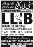 City Law College is a private college invites applications for admissions in Bachelor of Laws 5 Year Degree Program in Rawalakot Azad Jammu & Kashmir AJK 2021. Read newspaper ad for exact details.