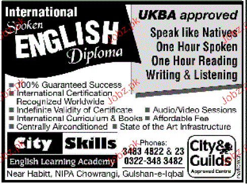 City Skill English Learning Academy Admission in English Diploma in Karachi Read newspaper ad for exact details.