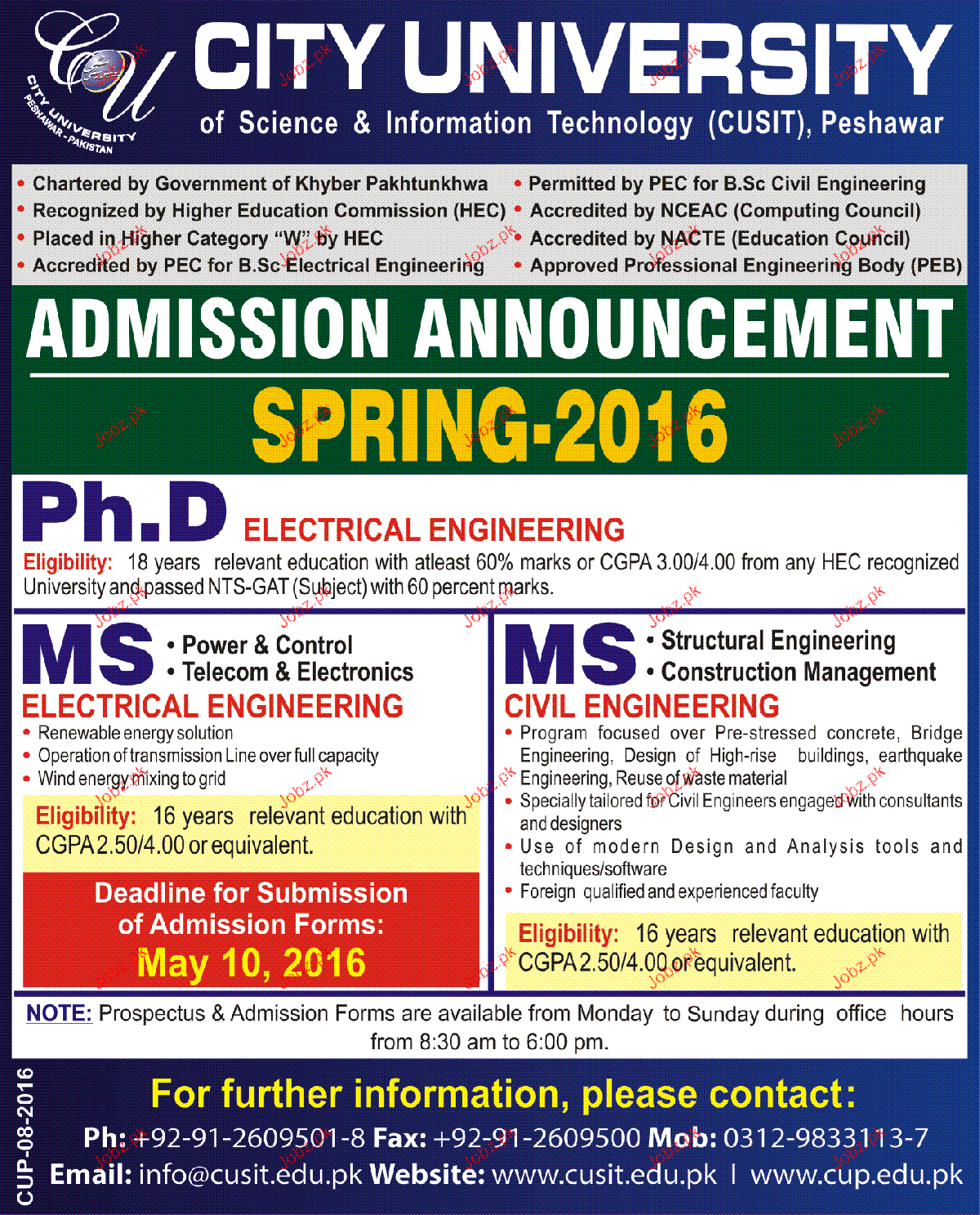 City University Admission in Phd and MS in Peshawar. Read newspaper ad for exact details.