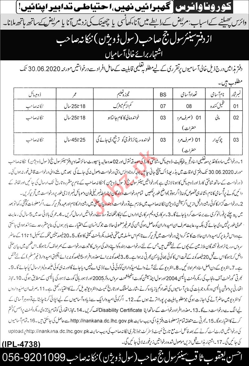 Civil Court Nankana Sahib Jobs 2020 For Tameel Kuninda