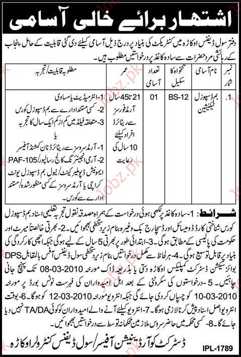 Apply as per details in job advertisement. Login to view further details of how to apply via https://www.jobz.pk online.