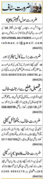 Private Lahore, lahore Punjab Pakistan invites applications from eligible candidates for the post of call center staff, office staff, clerk, supervisor, manager, office boy, accountant, civil engineer, security supervisor, field staff, field worker, retired person, quantity surveyor, security guard and call operator as per advertisement of November 2, 2023 published in daily Nawaiwaqt Newspaper. Candidates with Bachelor, Matric, Master, Intermediate and Middle etc. educational background will be preferred.