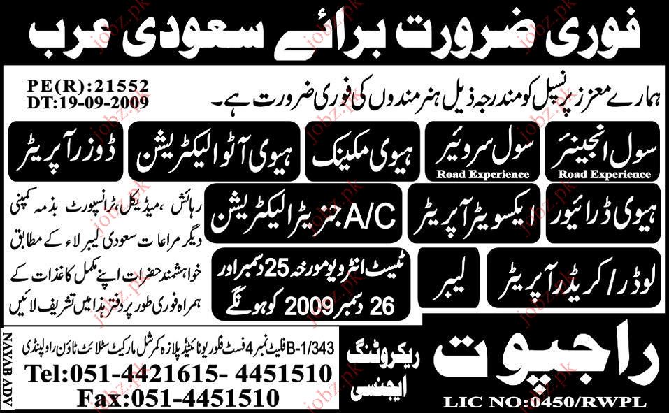 Civil Engineer, Auto Electrician, Dozier Operator required